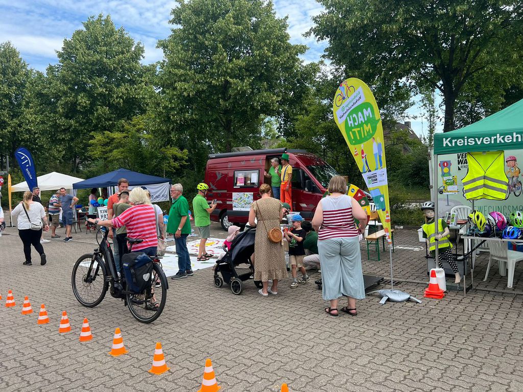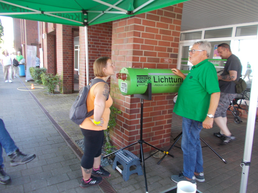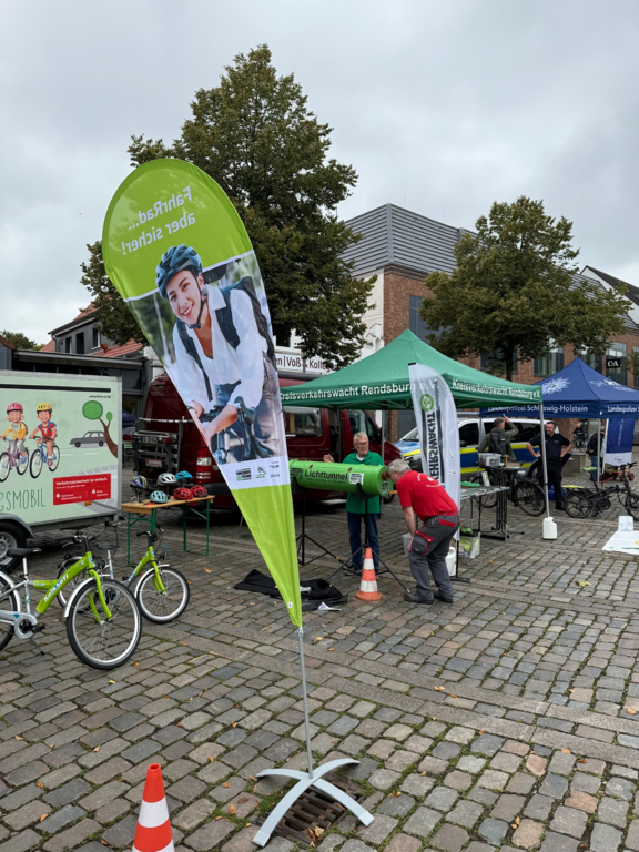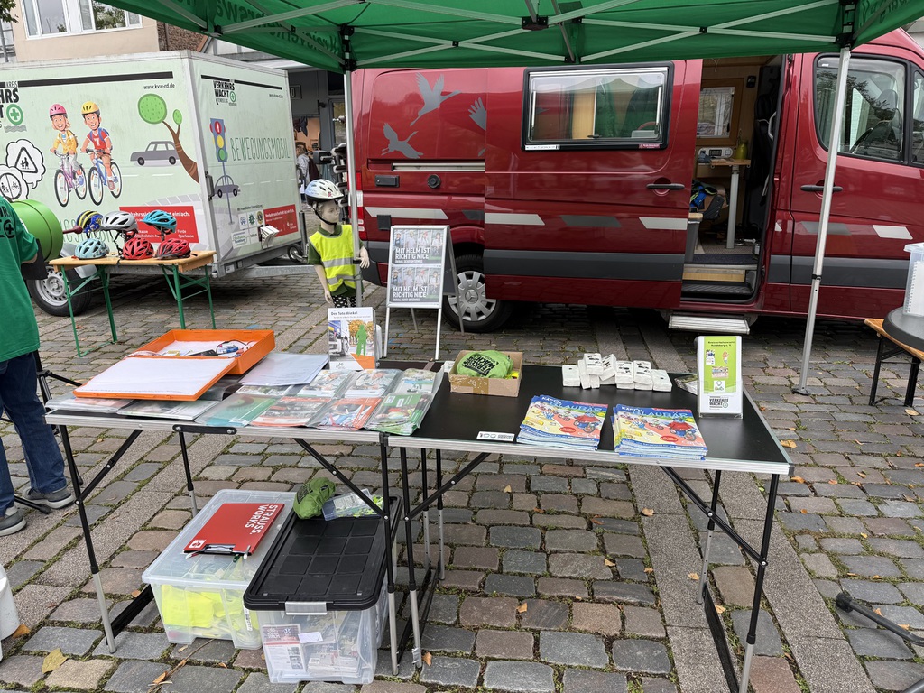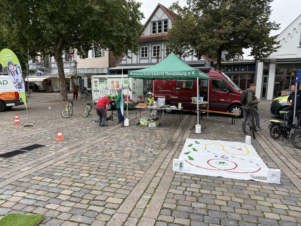 Mit einem großen Fahrradparcour, unseren Rauschbrillen nebst Rauschbrillenparcour, den VR-Brillen, verschiedenen Fahrradhelmen und diversen Warnwesten und weiteren Artikeln ("Sicherheit durch Sichtbarkeit" - die dunkle Jahreszeit hat begonnen!) konnten wir akticv sein.