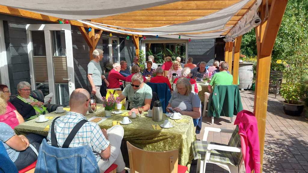 Bei Kaffee und Kuchen wurden die "Depots" wieder aufgefüllt und es ging nach einer längeren Pause am Hohner See vorbei über den Bahndamm von Hohn nach Fockbek und zum Ausgangspunkt zurück.