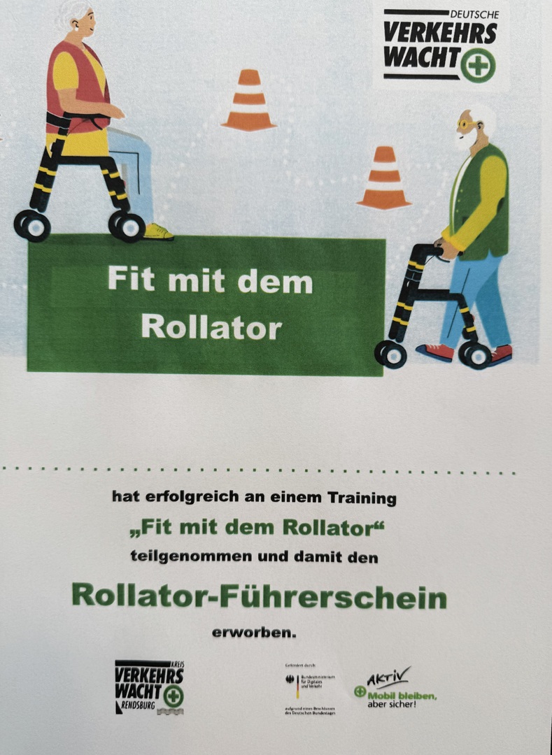 Alle Teilnehmer haben diesen mit Bravour gemeistert und haben danach einen „Rollator-Führerschein“ sowie ein